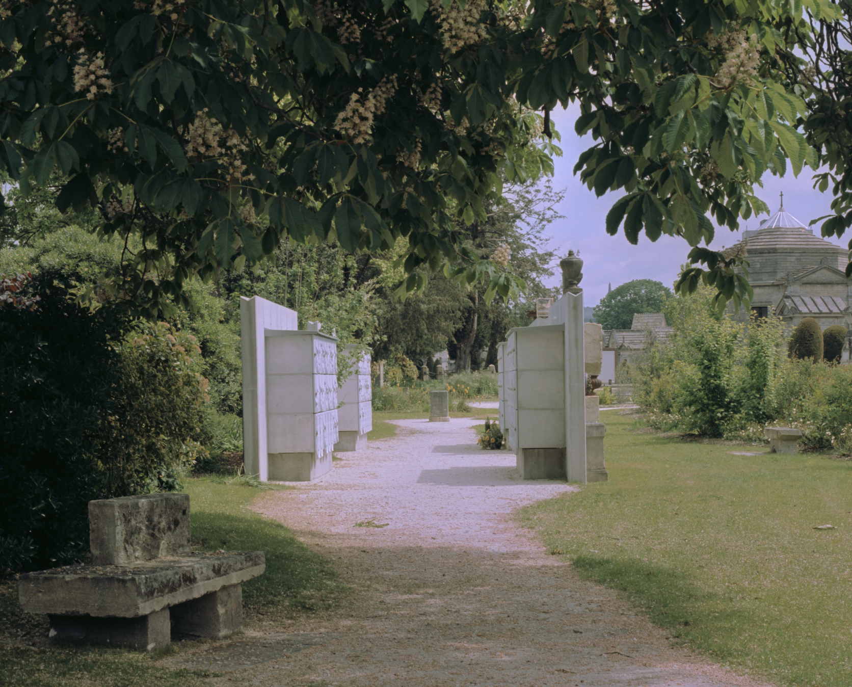 The Columbarium is situated within the historical and aesthetic context of the Chartreuse Cemetery, a former monastic garden, which became both a cemetery and a philosophical park in the 19th century. It is a generously planted space where the Columbarium and the Memorial Garden are integrated into a true landscaped promenade.