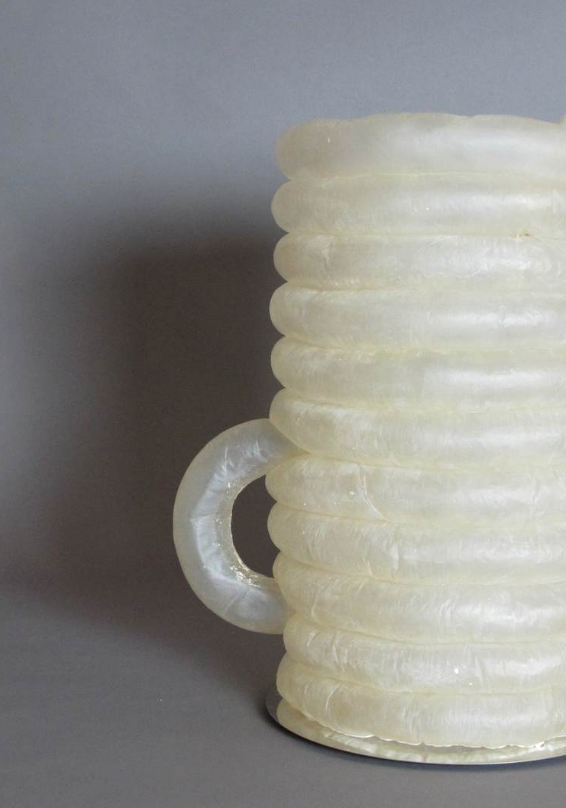 Pursuit of a research on the use of intestines, which begun in Greenland during summer 2017. Based on the discovery of seals intestines craft within the first Inuit populations. Using its technical qualities of impermeability and lightness to build the first k-ways and floats for their kayaks.This new series is built from local bovine intestines. Displaying a collection of living containers. According to ambient temperature, or still by the breath, they move, withdraw and revive. Highlighting the aesthetic and technical qualities of a material considered as dirt. And whose qualities are only appreciated today in
