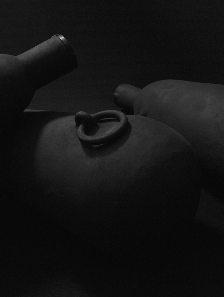 Lachrymotry urns is a series of three funeral urns aiming to be buried. Inspired by Victorian Century tears phials, these huge black tears also silently echo to the classic tradition of mourners. Each of these piece requires to be carried by celebrants. They invite to procession by their shape, carried in a pagan pietà. Their considerable weight calls symbolically the weight of an absent body.